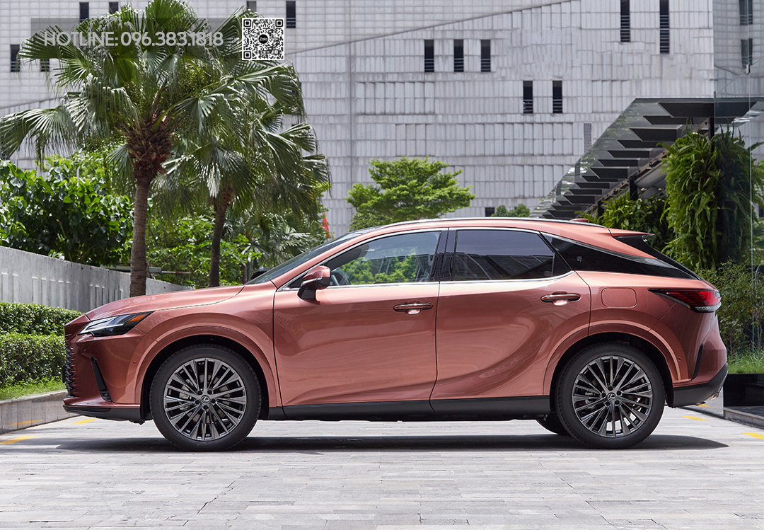 Hai phiên bản RX 350 F SPORT và RX 500h F SPORT Performance có viền cửa và ốp gương chiếu hậu sơn đen thể thao hơn. Ngoài ra, cạnh sườn xe cũng được sơn cùng màu với thân xe thay vì màu đen như các phiên bản khác, tạo nên thiết kế liền mạch hơn.